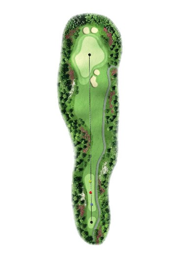 거리 390m, 10m PAR4 홀로서 Play상 거리는 403m 정도가 됩니다. 이 홀은 왼쪽 둔덕 방향으로 Tee Shot과
