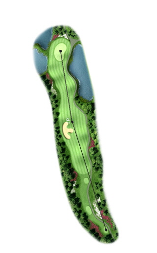 거리 370m, 12m PAR4 홀로서 PLAY상 거리는 360m 정도여서 거리로는 일반 골퍼에게 가장 재미있는 홀입니다.