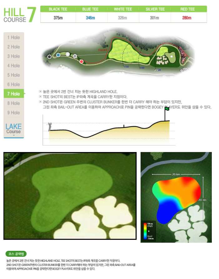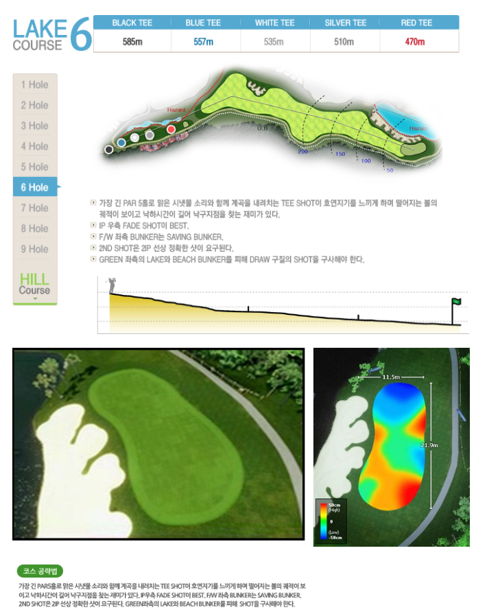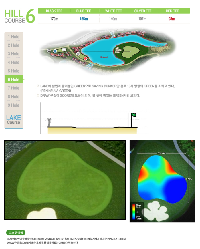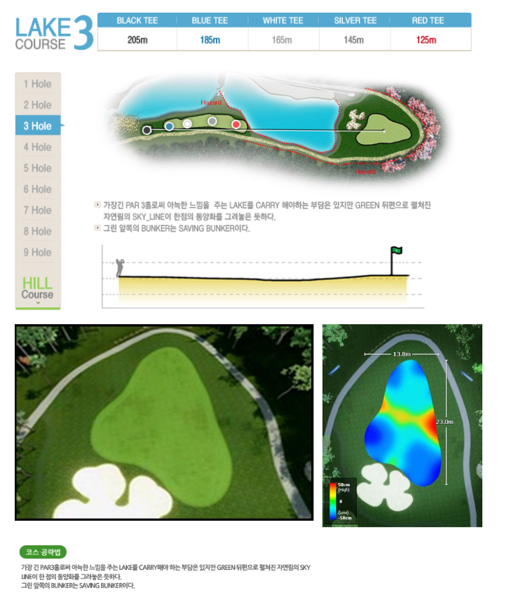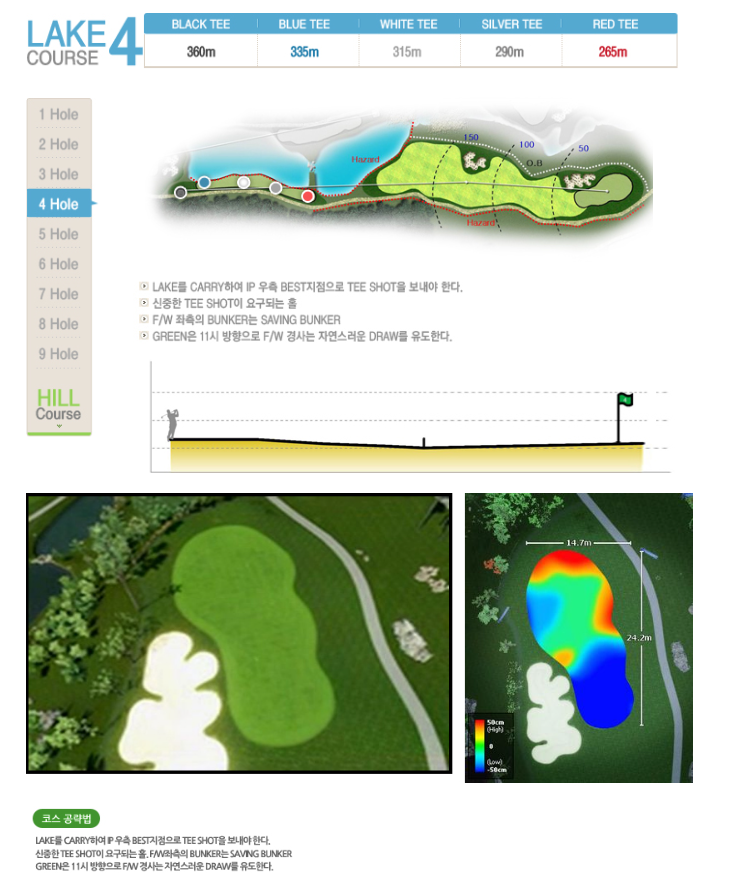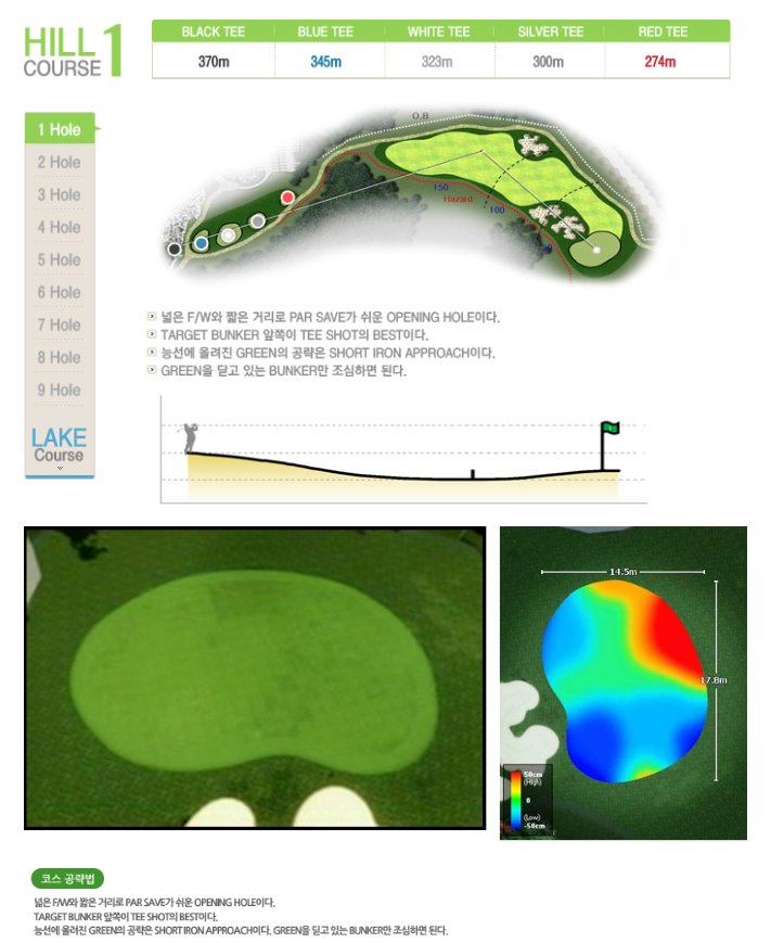 킹스데일CC는 골프 애호가들 사이에서 어려운 코스로 유명합니다. 자기 자신과 킹스데일CC 의 코스 도전하게 만드는 매력이 숨어있기도 합니다. 특히 벙커와 그린이 도전적인 요소로 꼽히죠. 코스는 2개의 코스로 레이크 코스 , 힐코스로 되어있습니다.
