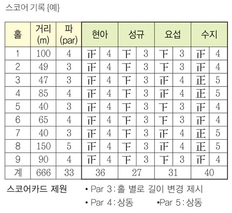 - 스코어카드에는 본인을 포함하여 각자의 타수를 기록한다.