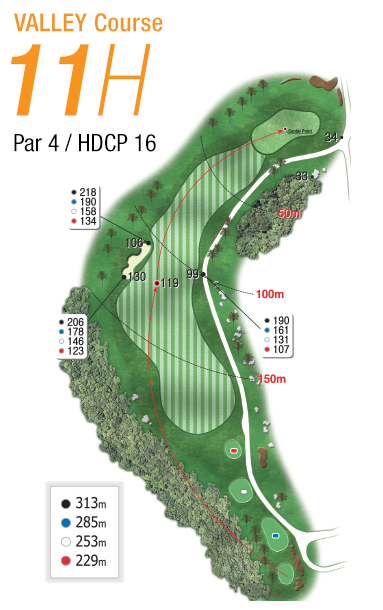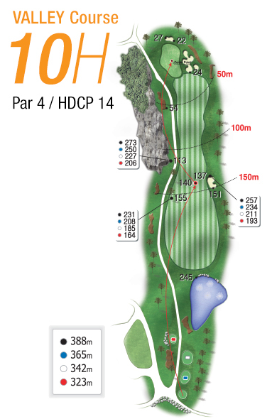 밸리코스의 시작은 좌측 암벽 지역이 OB로 처리되는 내리막 경사의 파4홀인데 세컨샷부터는 실거리보다 20M 정도 짧게 공략하시는 것이 좋습니다. 블랙밸리의 상징홀 12홀은 벙커 모래로 흑사를 조성한 곳으로 정면 우측 벙커를 피해 페어웨이 중앙보다 약간 좌측으로 공략하시는 것이 좋습니다.