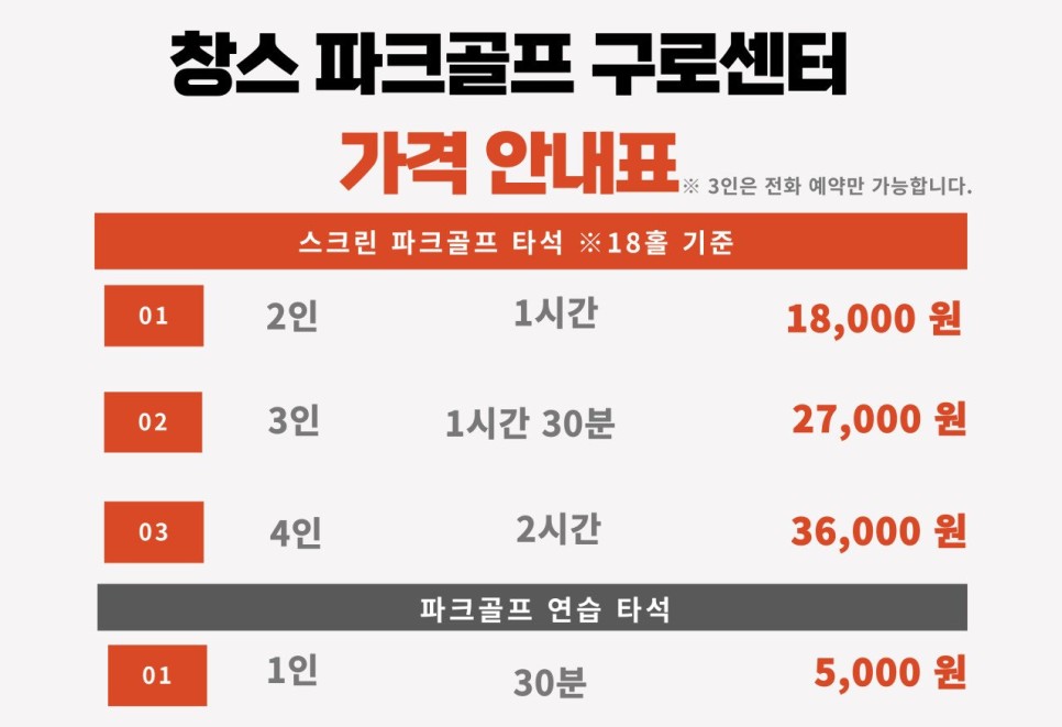 스크린 파크골프 18홀 1회 1인: 8,000원