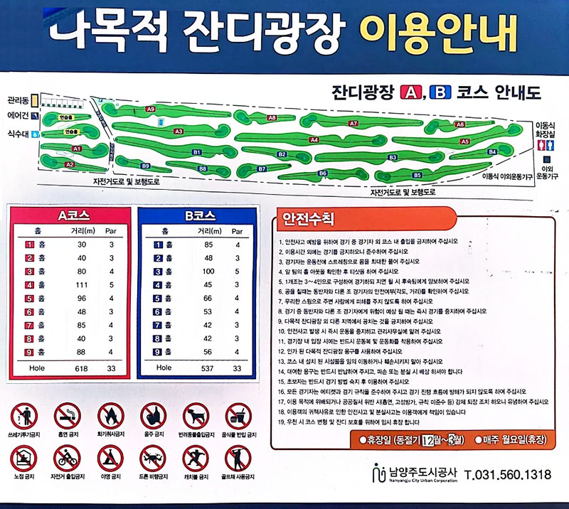최근 전국 지역마다 관내, 관외 이용자 갈등이 심해지고 있는 현상이 생기는데, 남양주시 입장에서는 지역민을 우선할 수 밖에는 없겠죠. 안타깝지만 지역 자산으로 운영되는 공공시설이기 때문에 이해해야 할 것 같습니다. 서울 근교에서 이렇게 잘 갖춰진 파크골프장은 흔치 않은데 아쉽네요.