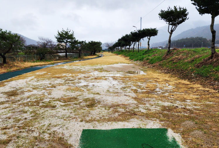 관산파크골프장은 전남 장흥군 옥당리에 아담하게 9홀로 조성된 지역구장입니다. 장흥군에서는 200여 명의 동호인이 활동하고 있으나, 경기장이 부족한 편입니다. 이곳 관산파크골프장(9홀)을 제외하면 기존 폐교와 운동장을 활용한 경기장 2곳이 있을 뿐입니다. 회원 수요에 따라가지 못해 대기시간을 기다려야 경기를 치를 수 있는 상황에 콜퍼분들의 불만이 많다고 합니다. 그래서 전남 장흥군이 13억 원을 들여 탐진강변에 18홀의 탐진강파크골프장을 조성중입니다.