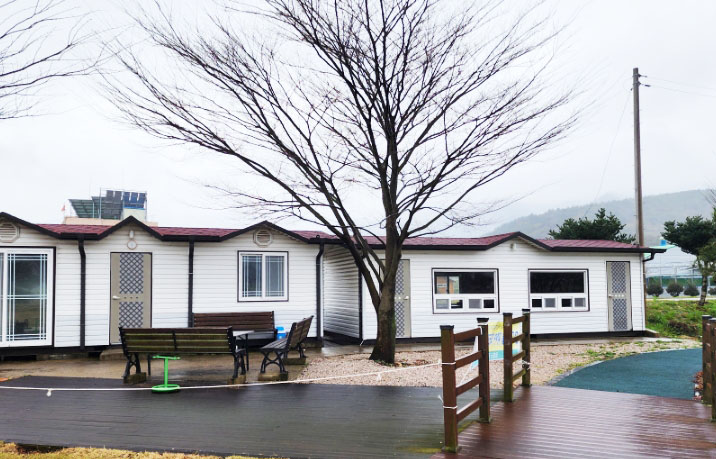 구장은 아담하지만, 주차장은 넓습니다. 맞은편 쪽 건물은 게이트구장이고 주차장을 같이 사용하고 있습니다. 클럽하우스 입구, 클럽 하우스입니다. 컨테이너 조립식 건물로 깨끗합니다.