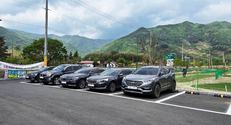 주차장 경치마저 끝내주는 삼장여울파크골프장입니다.