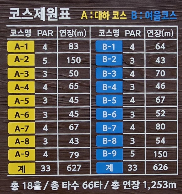 홀수: 총 15,734㎡ 면적 18홀 규모