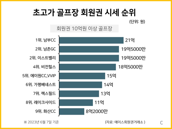반면 가격이 오른 회원권 ‘톱10’ 중 6곳이 5억원 이상 회원권이었다.
