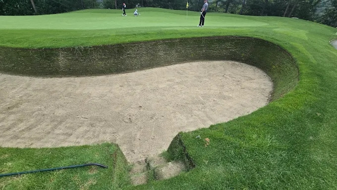 영국 풍 콘셉트의 깊은 항아리 벙커와 자연 지형을 살린 레이아웃이 인상적입니다.