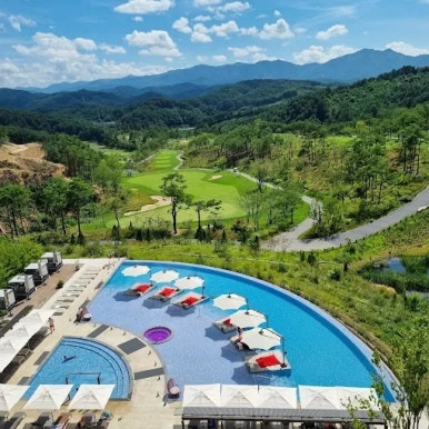 '설악과 동해바다를 품은 쉼의 정원'이라는 뜻으로, 자연 속에서 골프와 온천, 숙박을 동시에 즐길 수 있는 것이 특징입니다.