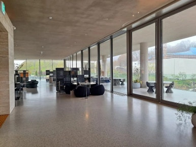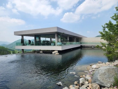 자연 풍경을 즐길 수 있는 전망형 구조와 품격 있는 공간 구성.
