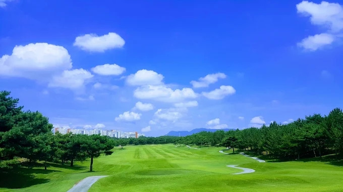 사계절 변화가 뚜렷한 자연환경 속에서 ‘쾌적하고 아늑한 코스 전경’이 강조돼 있어요.
